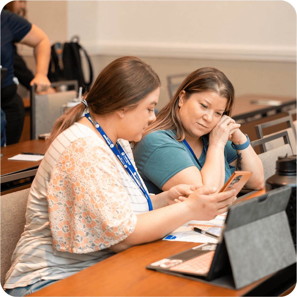 Brianna (left) and Jessica (right) collaborating after a GoEngage Connect session.